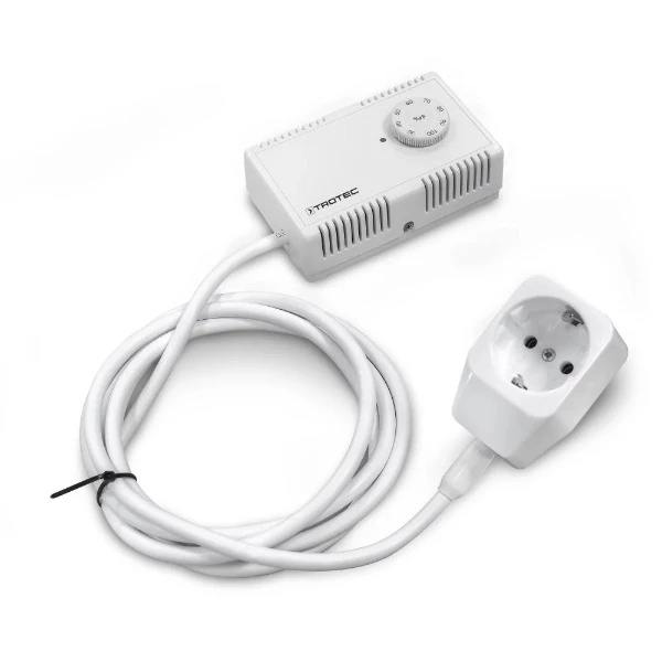 Tweepuntsregelaar voor het regelen van de relatieve vochtigheid. Geleverd met stekker en 2 meter kabel.