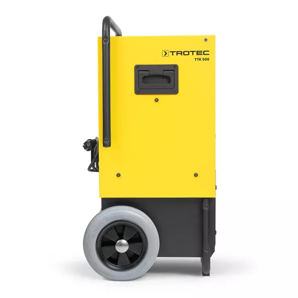 Deze professionele condensdroger is consequent ontworpen voor maximale mobiliteit op wisselende locaties en ruwe werkomgevingen. Daarom beschikt de TTK 500 naast een trolley met verstelbare duwbeugel over grote wielen met niet-afgevende rubberbanden – alles verenigd in een robuuste metalen behuizing.